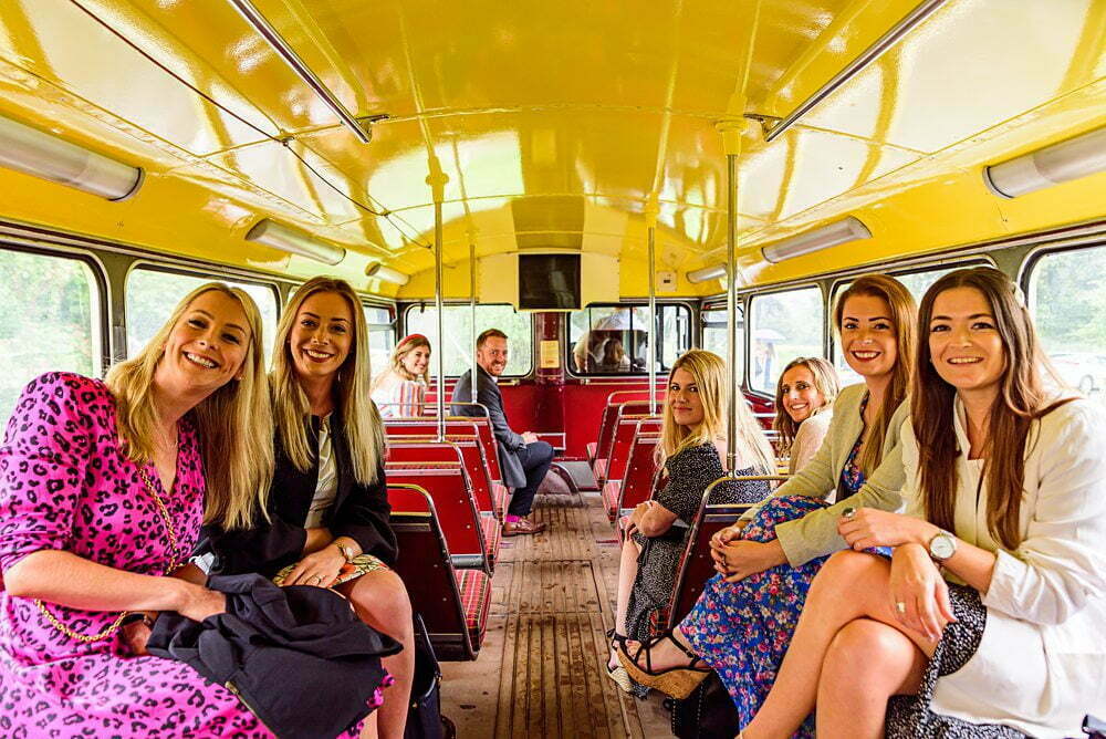 After the bridal preparations, we made our way to the beautiful and intimate St. Andrew’s Church in Newton Kyme for the wedding service. Surrounded by rolling fields and curious cows, this little church provided the perfect countryside setting for Tom and Bex’s special moment. Following the ceremony, the guests boarded a vintage York Pulman double-decker bus, which whisked them away to the reception venue. It was a fun and unique way to start the celebrations, and the cows seemed to enjoy watching the guests embark on their journey. (See the picture below for a glimpse of the bovine spectators!)
